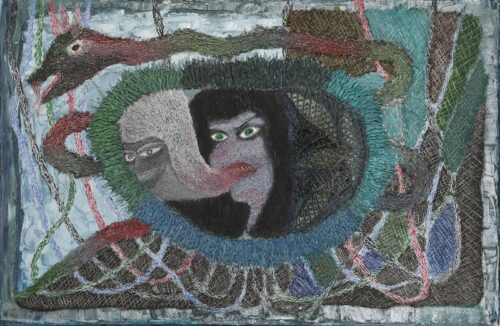 Kleopatra’yı simgeleyen bu resim, yüzündeki gizemi ve içindeki güzelliği anlatmaktadır. Farklı renk tonları ile etrafına uzanan çizgiler ise onu kötülüklerden ve yılanlardan koruyan çerçeveyi ifade etmektedir.