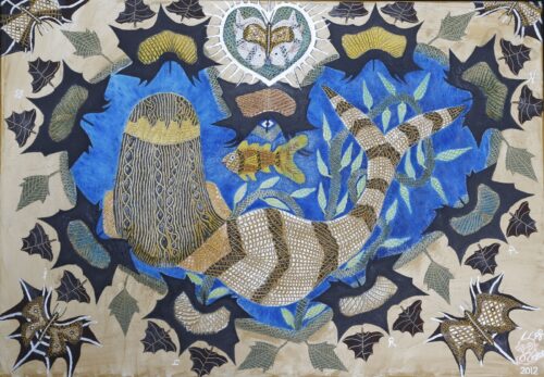 Okyanusun derinliklerinde yaşayan güzel saçları, göz alıcı vücudu ve eşsiz tacı ile gizemli, eğlenceli ve âşık bir Deniz Kızını anlatmaktadır. Deniz bitkilerinin üzerine uzanıp, masmavi denizin parıltısını ve aşk‛la etrafında gezen sevimli balıkları izleyen Deniz Kızının denize olan aşkı o kadar büyüktür ki denizin kalbinin de kendisi için attığını ve onu gizlice izlediğini hissetmektedir. Kıyıya kadar gelip gökyüzünü, ağaçlardan düşen yaprakları ve üzerlerine konan kelebekleri izleyen Deniz Kızını anlatan bu resim, Büyük bir aşkı ifade etmektedir.